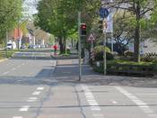 Radfahrende müssen hier auf den schmalen unebenen Radweg wechseln. Im Verlauf vorher ist die Radverkehrsanlage nicht benutzungspflichtig.