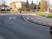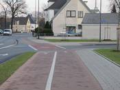 An der Kreuzung mit der Carl-Bertelsmann-Straße stehen keine Verkehrszeichen zur Vorfahrtregelung (Bild 2). Radfahrer, die aus der Sunderstraße kommend in den Radweg der Carl-Bertelsmann-Straße abbiegen wollen, können daher davon ausgehen, das hier die Regel "Rechts vor Links" gilt und sie Vorfahrt vor Radfahrern haben, die auf dem Radweg der Carl-Bertelsmann-Straße in Richtung Stadtauswärts fahren. Allerdings ist die Carl-Bertelsmann-Straße mit Zeichen 306 StVO als Vorfahrtsstraße beschildert (Bild 3). Diese Vorfahrtregelung gilt auch für den straßenbegleitenden Radweg der Carl-Bertelmann-Straße.