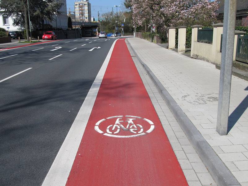 Im April 2013 wurden die Seitenstreifen rot gefärbt und mit Piktogrammen markiert, die in Anlehnung an das Verkehrszeichen 237 StVO (Radweg) ein mit einem Kreis umrandetes Fahrrad zeigen. Laut den Empfehlungen für Radverkehrsanlagen (ERA - Abschnitt 3.3) der Forschungsgesellschaft für Straßen- und Verkehrswesen werden diese Piktogramme zur Verdeutlichung der Benutzungspflicht von Radfahrstreifen markiert. Verkehrszeichen 237 StVO wurden aber nicht aufgestellt.