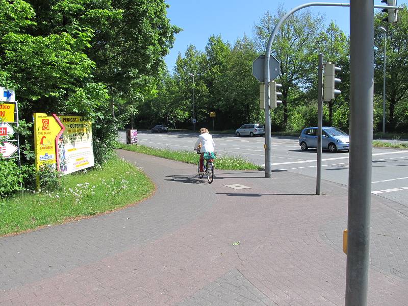 April 2014: Die linksseitige Benutzungspflicht wurde vor der Kreuzung mit der Verler Straße beendet (Bild 4).