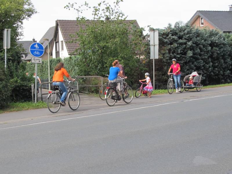 Bild 3: Einige Radfahrer weichen regelwidrig auf die Fahrbahn aus.