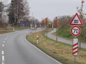 In Gegenrichtung ist ab dem Kreisverkehr mit der Österwieher Straße bis kurz vor der Einmündung Westfalenweg eine Geschwindigkeit von 70 km/h zulässig (Bilder 3 + 4). Nach eigenen Beobachtungen fahren auch aus Richtung Österwieher Straße kommende Kraftfahrer oft mit mehr als die zulässigen 50 km/h an der Einmündung Westfalenweg vorbei.