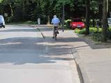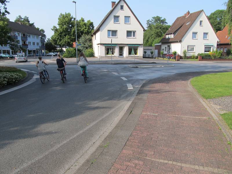 Bei diesen Nebenalagen handelt es sich eindeutig um nicht benutzungspflichtige Radverkehrsanlagen, die von Radfahrern gemeinsam mit den Fußgängern benutzt werden können. Am Anfang der Anlagen ist das allein durch die rote bzw. rot / graue Pflasterung erkennbar.