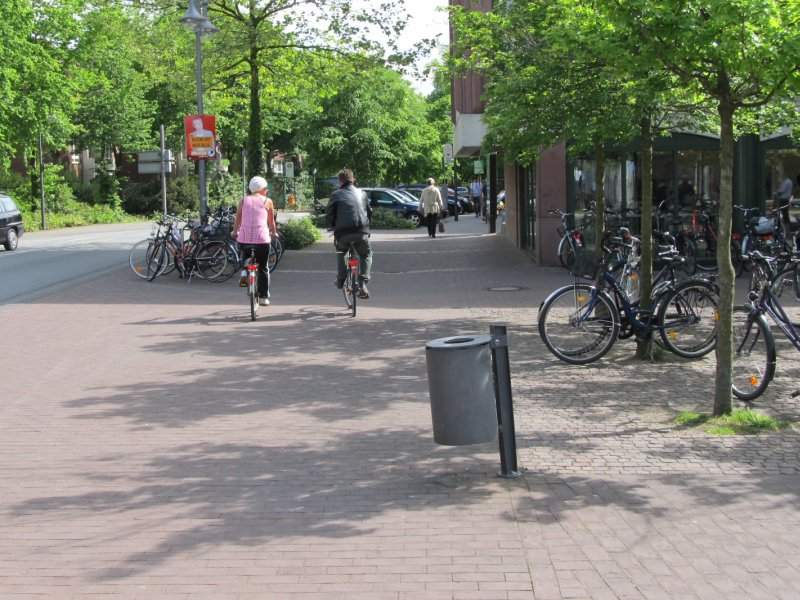 Ist Radfahren auf den rot gepflasterten Nebenanlagen an der Blessenstätte im Bereich der Stadtbibliothek verboten?