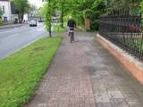 Auf der anderen Straßenseite ist der vorhandene Gehweg durch seine graue Pflasterung erkennbar. Zur Verdeutlichung sind Verkehrszeichen 239 StVO aufgebracht (Bild 6). Im weiteren Verlauf wird der Gehweg zu einem getrennten Geh- und Radweg ohne Benutzungspflicht für Radfahrer. Das aufgebrachte Zeichen 239 StVO wäre eigentlich nicht erforderlich (Bild 7).