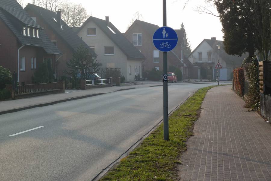 Bild 7: Nach dem Entfernen der Zeichen 240 ist nicht erkennbar, ob auf den grau gepflasterten Gehwegen Radverkehr zulässig ist.
