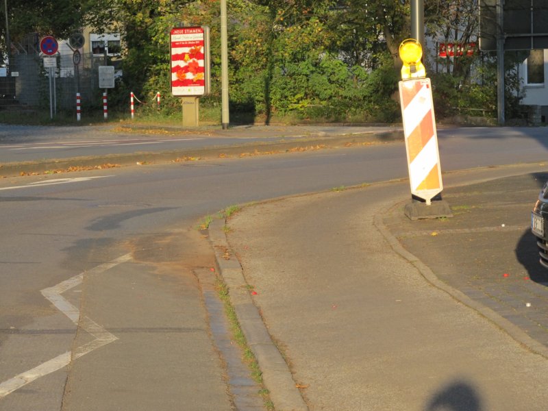 Die Benutzungspflicht wurde im Dezember 2011 aufgehoben. Die Mangelmeldung ist damit hinsichtlich der Benutzungspflicht erledigt. Die Priorität der Mangelmeldung wurde auf niedrig heruntergestuft, da die Oberflächenmängel nun legal umfahren werden können.