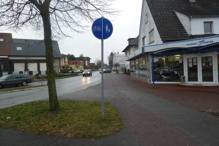 Bild 1: Der sehr schlechte Bürgersteigradweg in Höhe von Zweirad Oeffelke