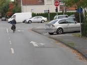 Bild 3: An einer Grundstücksausfahrt müssen Radfahrer auf den Gehweg wechseln.