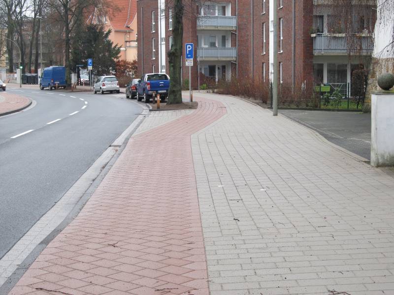 Bild 1: Der getrennte Rad- Gehweg und im weiteren Verlauf der Gehweg ist zunächst nicht benutzungspflichtig