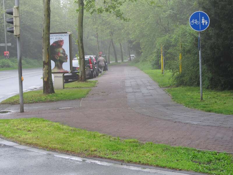 26.07.2012: Im Juli 2012 wurden die Benutzungspflichten aufgehoben und linksseitig eine Freigabe mittels Zeichen Z 1022-10 (Radfahrer frei) angeordnet. Die schlechte Oberfläche kann damit legal auf der Fahrbahn umfahren werden. Die Mangelmeldung wurde daher auf niedrige Priorität heruntergestuft.