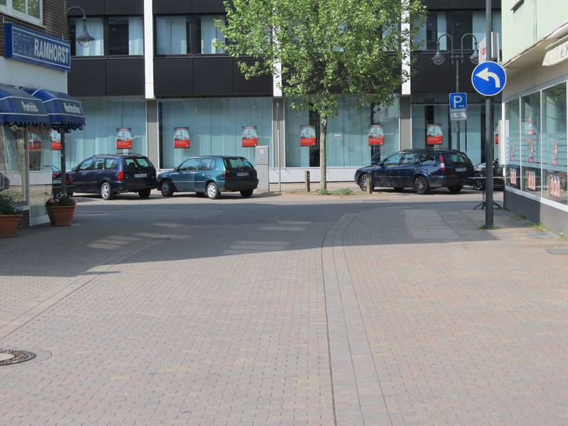 Bild 4, November 2013: Die Verkehrszeichen "vorgeschriebene Fahrtrichtung" wurden durch Zusatzzeichen "Radverkehr frei" ergänzt.