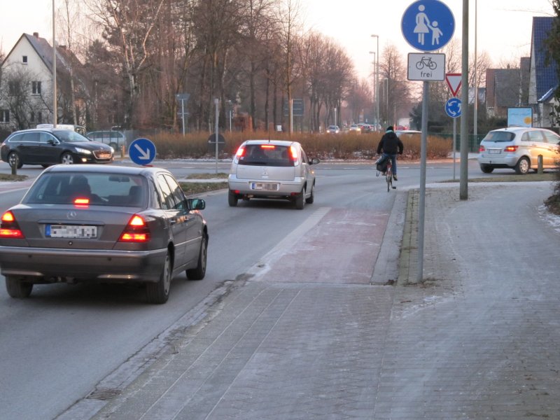 Bild 7: Aus Richtung Schloß Holte ist der (Rad-) Gehweg zunächst nur 1,60 m schmal